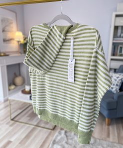 Sweter LEA STRIPS wełna/wiskoza/kaszmir GROSZKOWA ZIELEŃ/ECRU