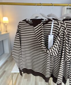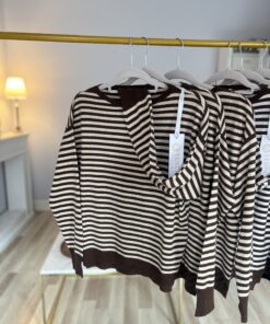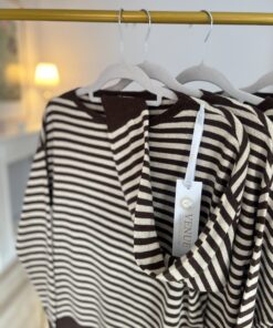 Sweter LEA STRIPS wełna/wiskoza/kaszmir czekolada beż