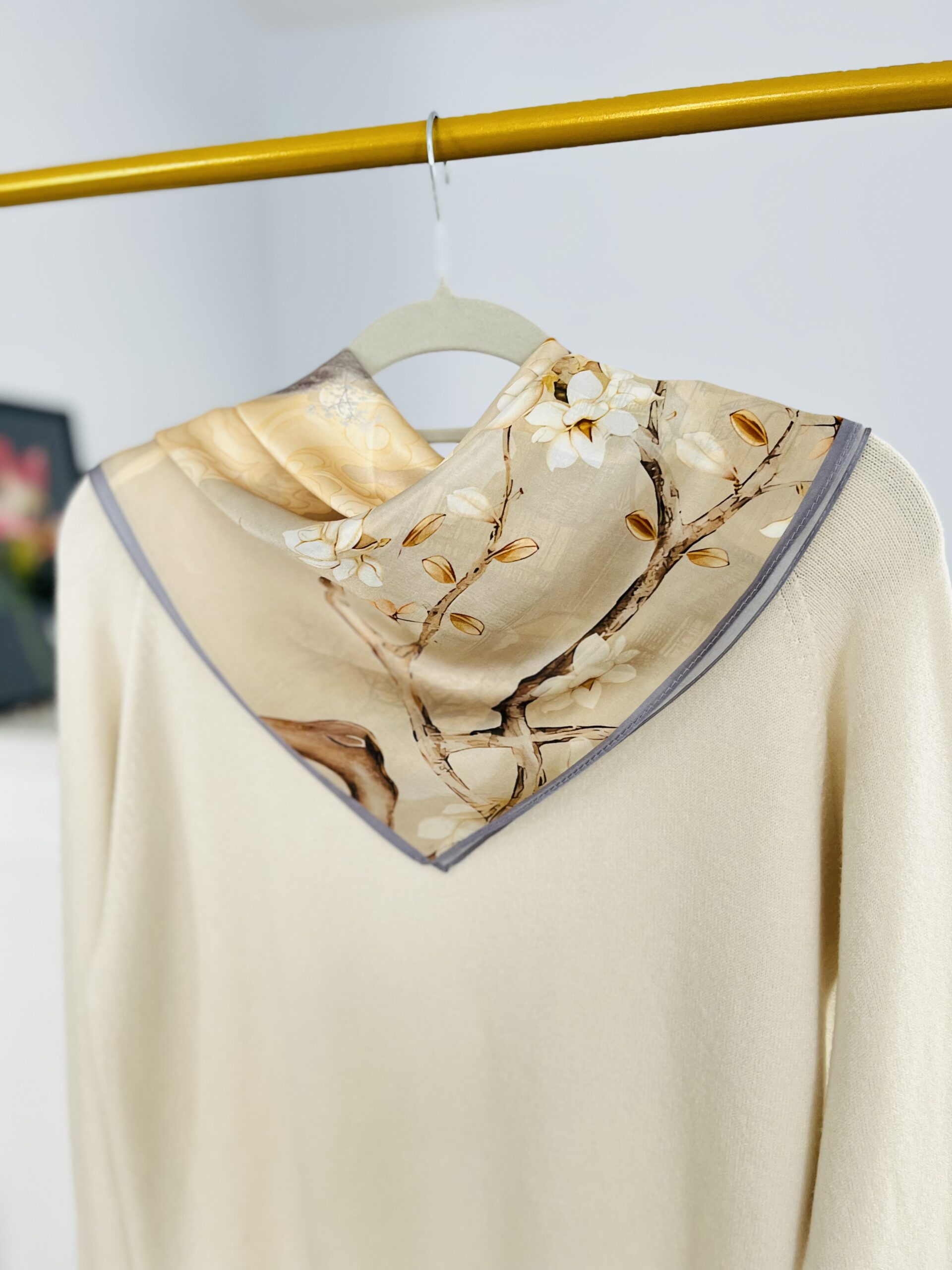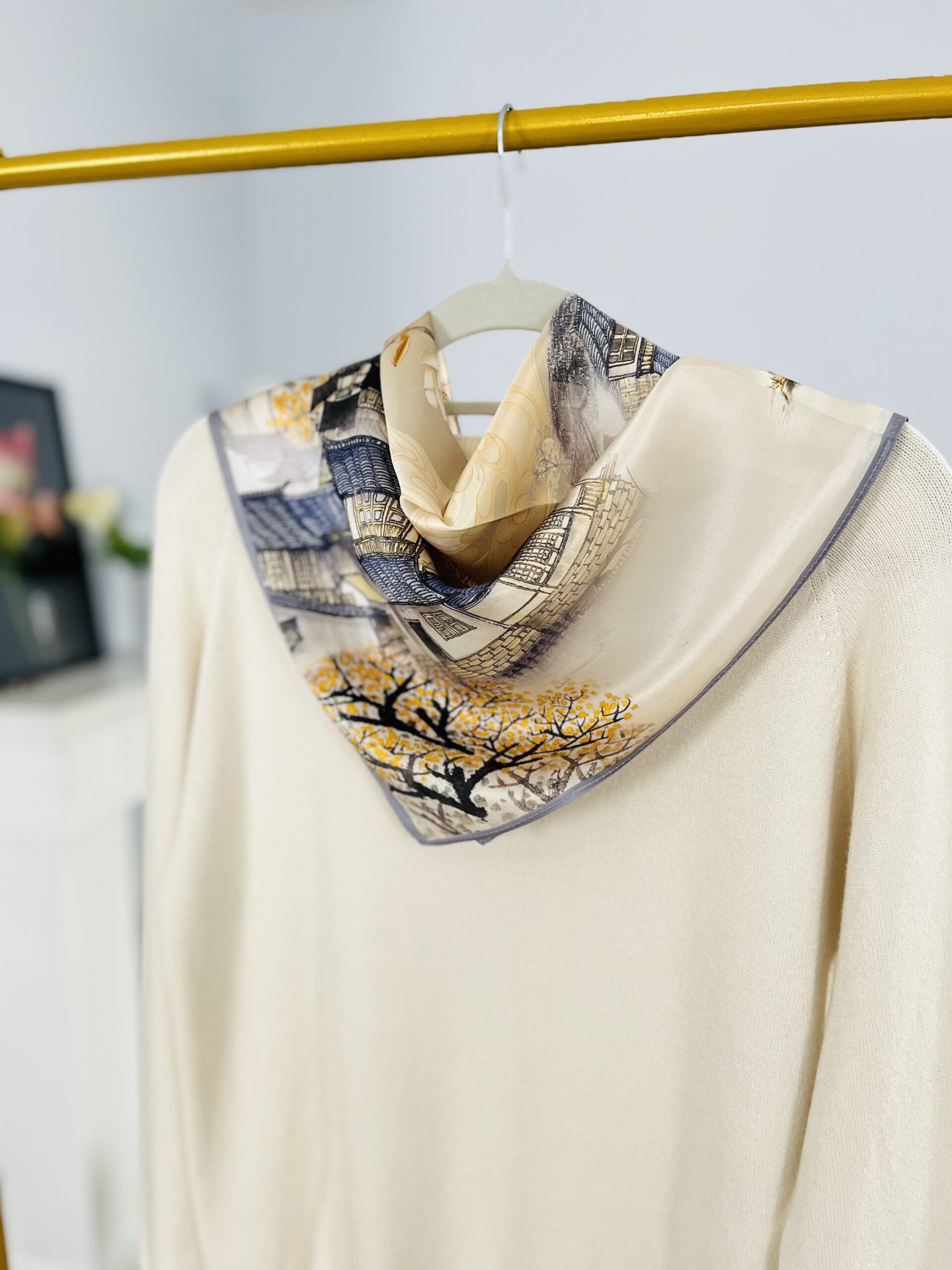 PRANIE – chemiczne lub ręczne. Przy praniu ręcznym NIE TRZEMY I NIE WYŻYMAMY apaszki – jedwab na mokro jest delikatniejszy. Pierzemy w 20/30 stopniach bardzo delikatnie uciskając, w bardzo delikatnym płynie. Dokładnie płuczemy – i po delikatnym odciśnięciu rozkładamy – na płasko, lub rozwieszamy. Nie suszymy apaszki na słońcu.