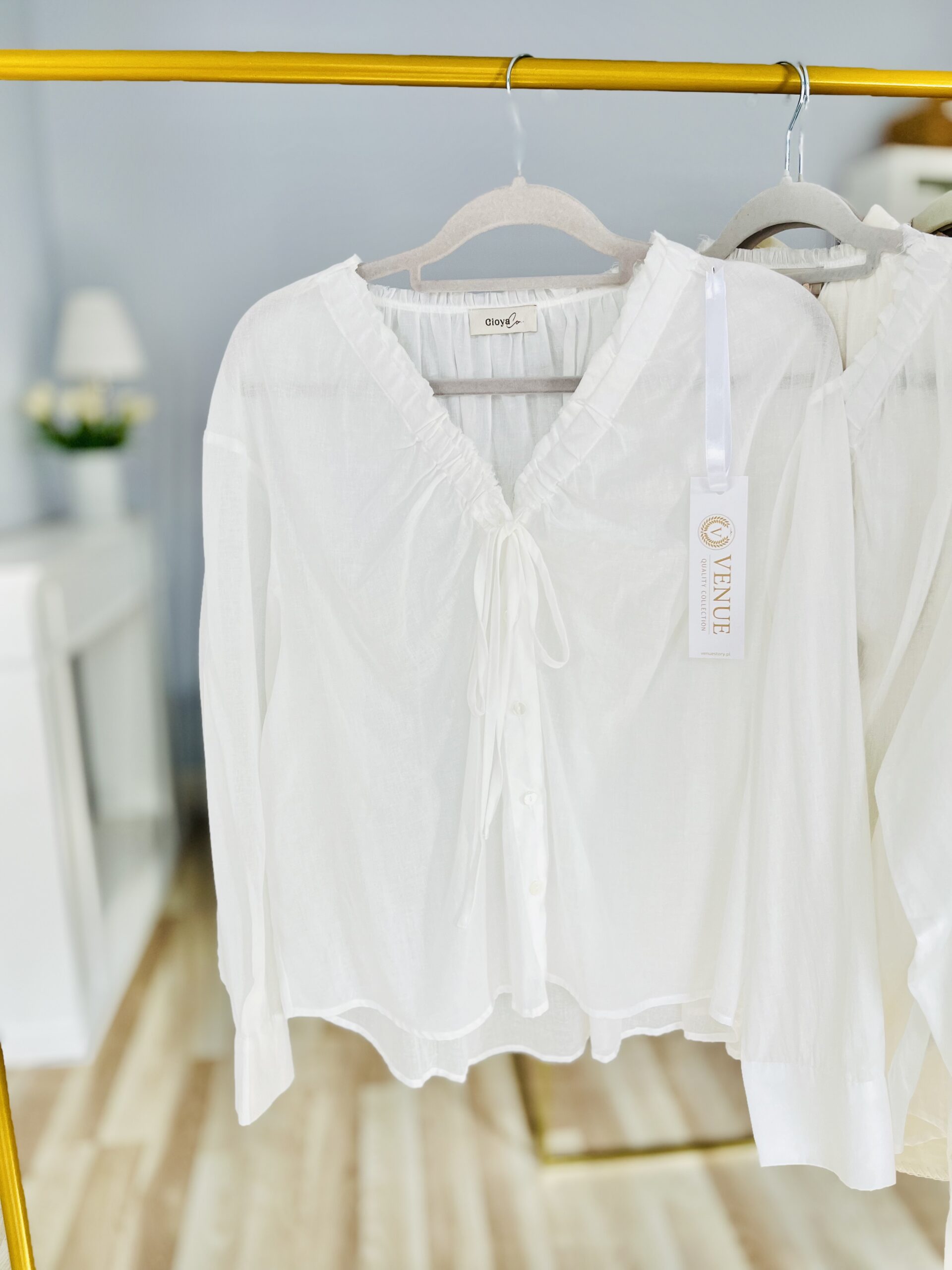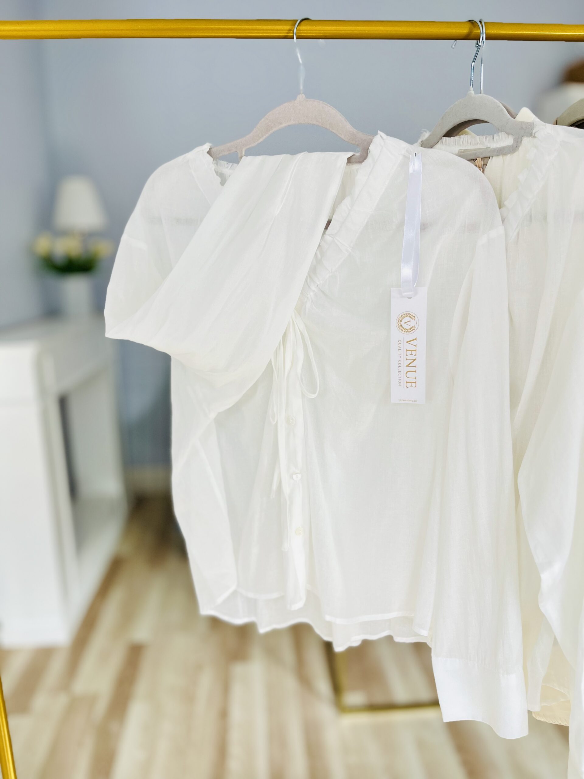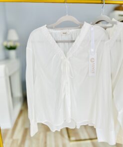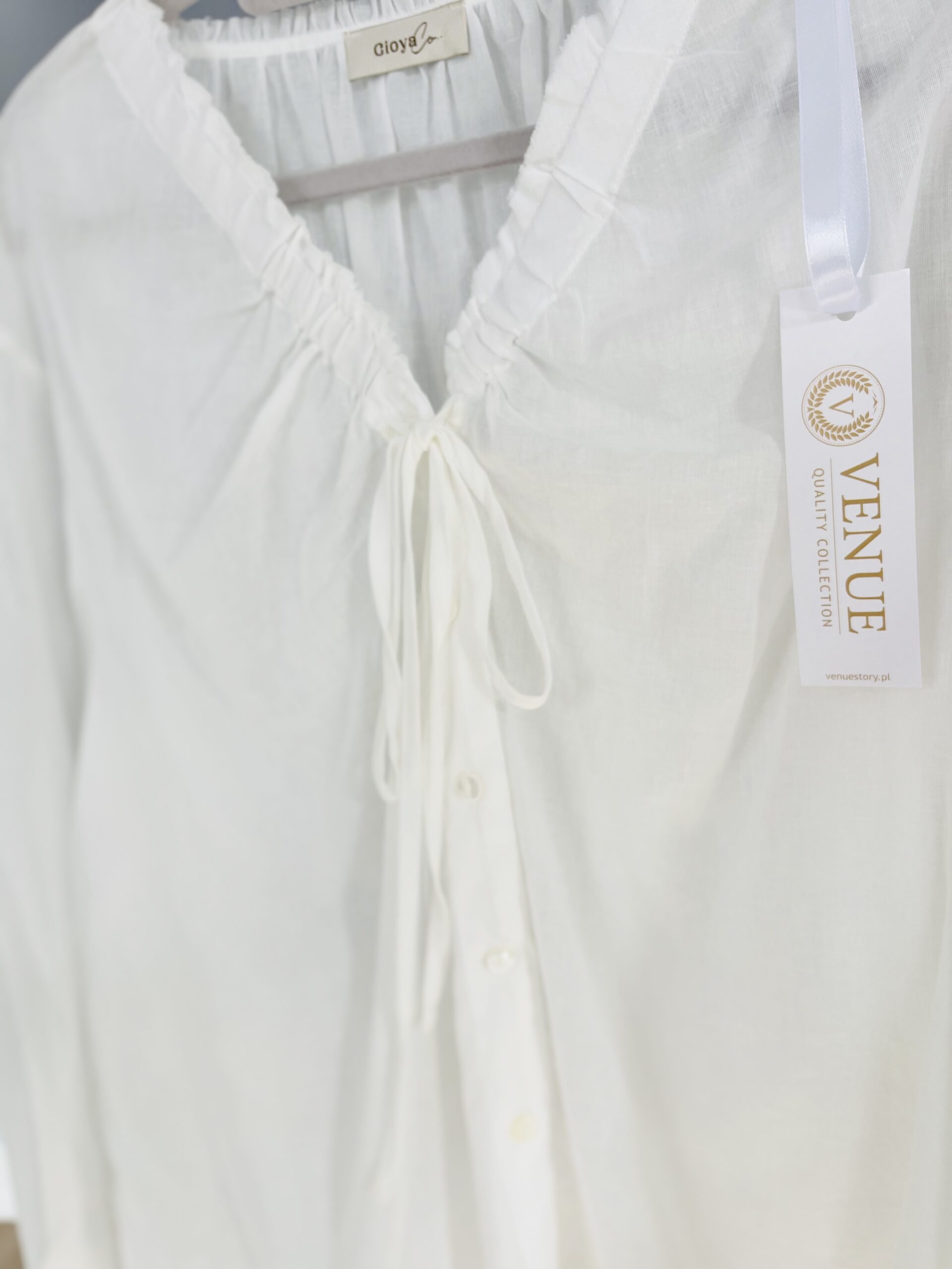 Lekka jak piórko, delikatna, fantazyjnie wykończona bluzka damska. Idealna do wiosenno- letnich stylizacji.