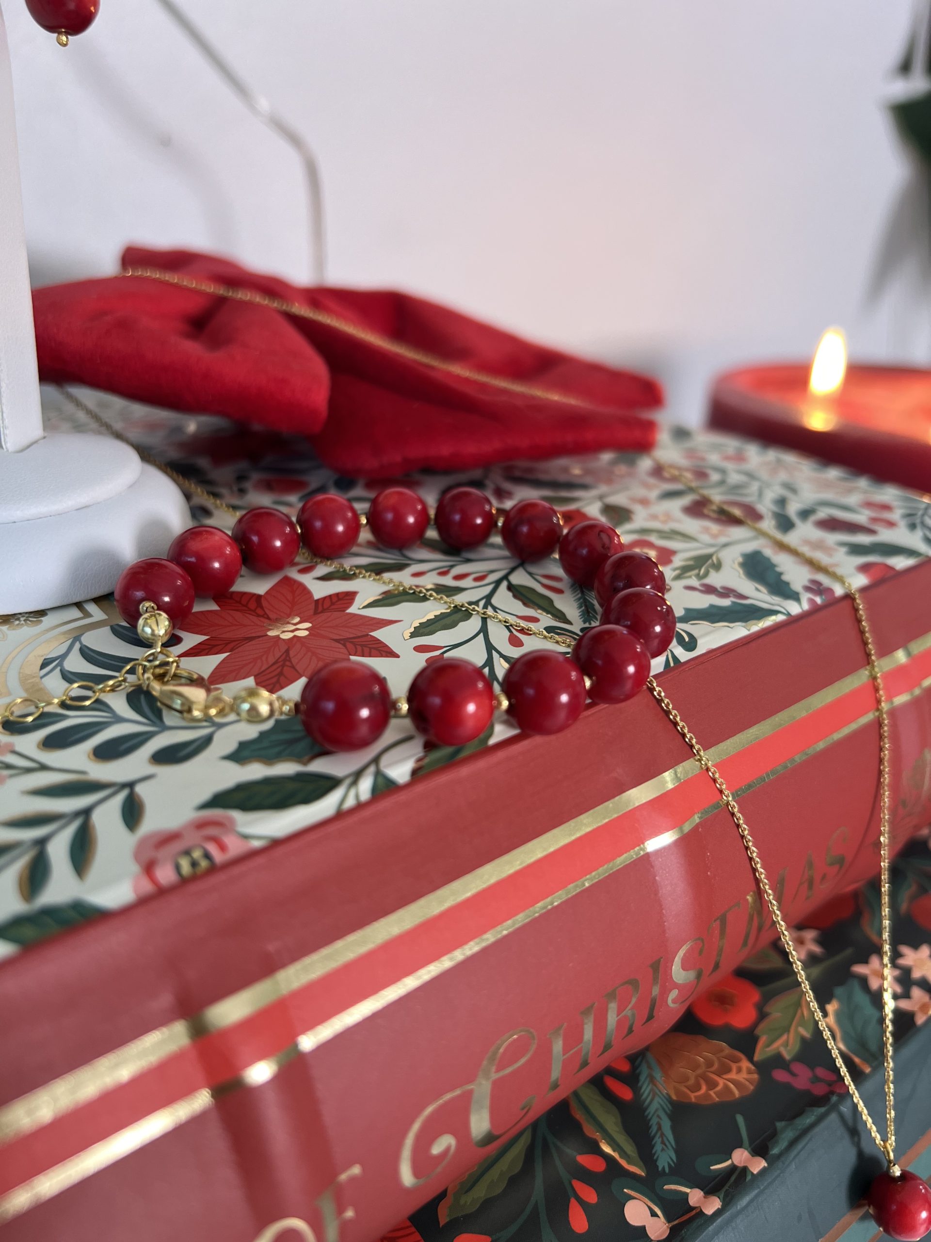Bransoletka CRANBERRY to model pasujący do wszystkich kobiecych zimowych stylizacji, lub takich, które bazują na barwach natury- wykonana została z wykorzystaniem elementów jubilerskich w postaci srebra złoconego 24K złotem oraz z okrągłych koralików bambusowych trawionych na szlachetny odcień wiśniowej czerwieni. Można go zestawiać z wszystkimi innymi elementami biżuterii VENUE CRANBERRY. To biżuteria, która zachwyca swoją delikatnością – nie da się jej nie zauważyć. Klasyk, który zawsze warto mieć jako idealne uzupełnienie każdej stylizacji bazującej na elegancji i dobrym stylu.
