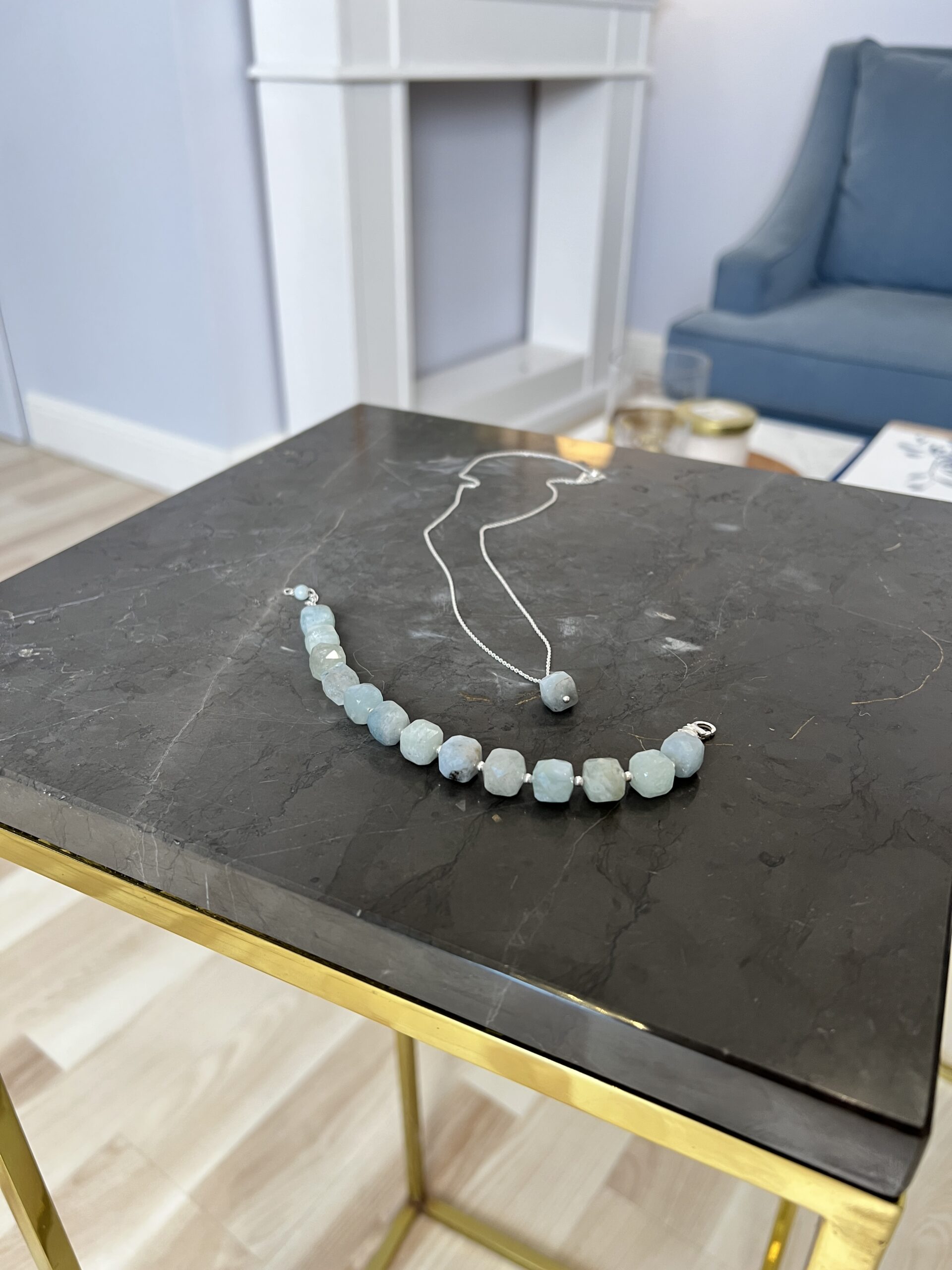 kamienie fasetowane AKWAMARYNU 10 mm i 4 mm - długość bransoletki: 16 cm + łańcuszek do regulacji