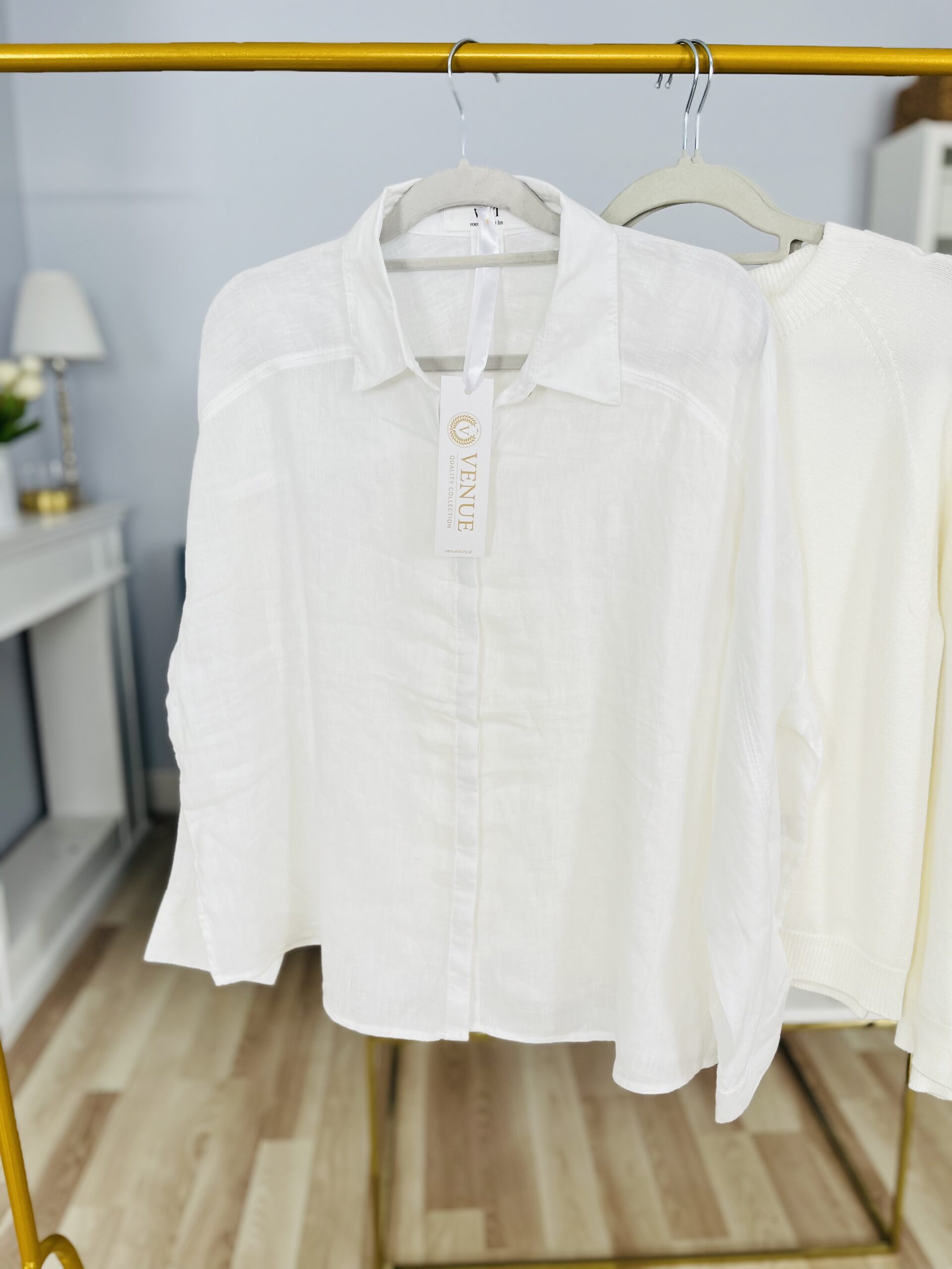 Lekka jak piórko, delikatna, lniana koszula damska. Uniwersalna. Z zakrytym zapięciem na guziczki, klasycznym kołnierzykiem.. O bardzo dobrym składzie ( 100% len). Idealna do wszelkich wiosenno- letnich stylizacji, ze względu na minimalistyczny krój.