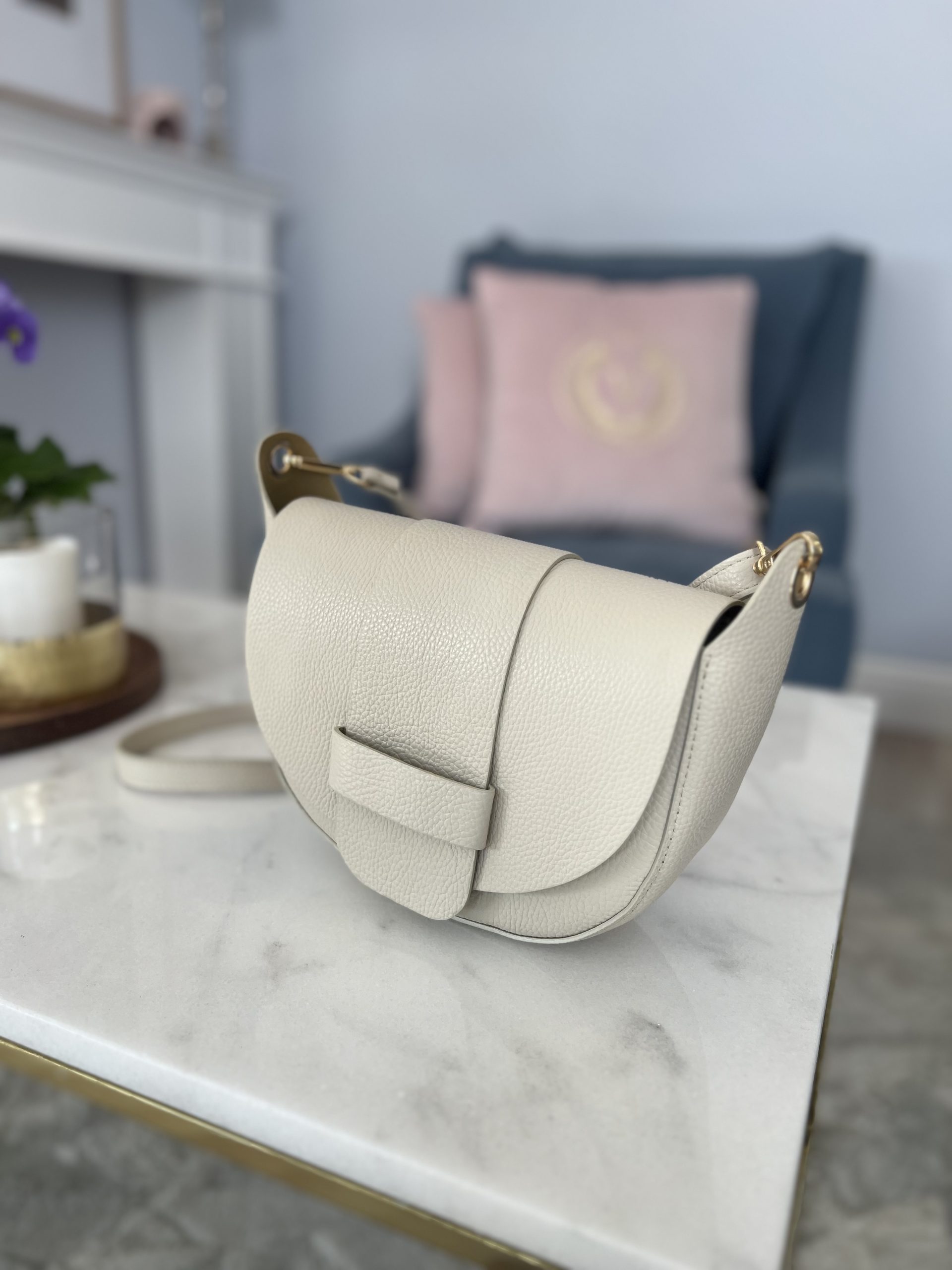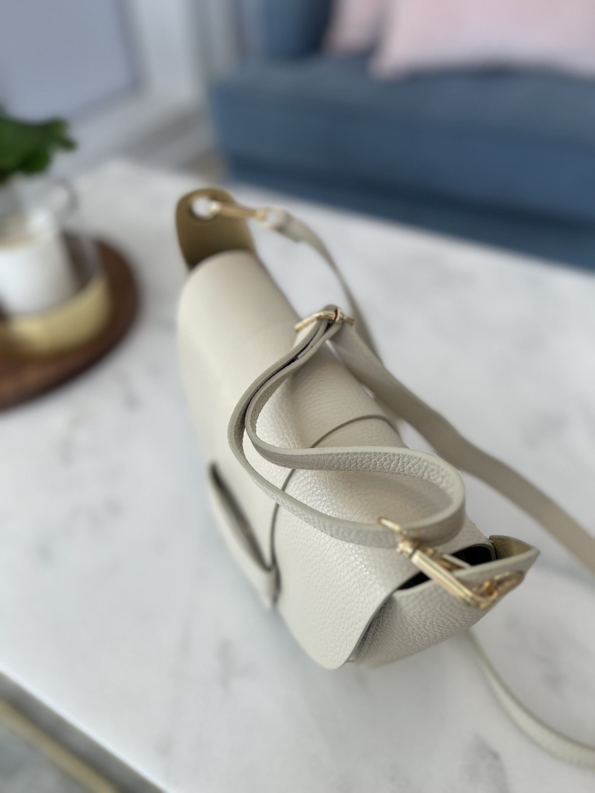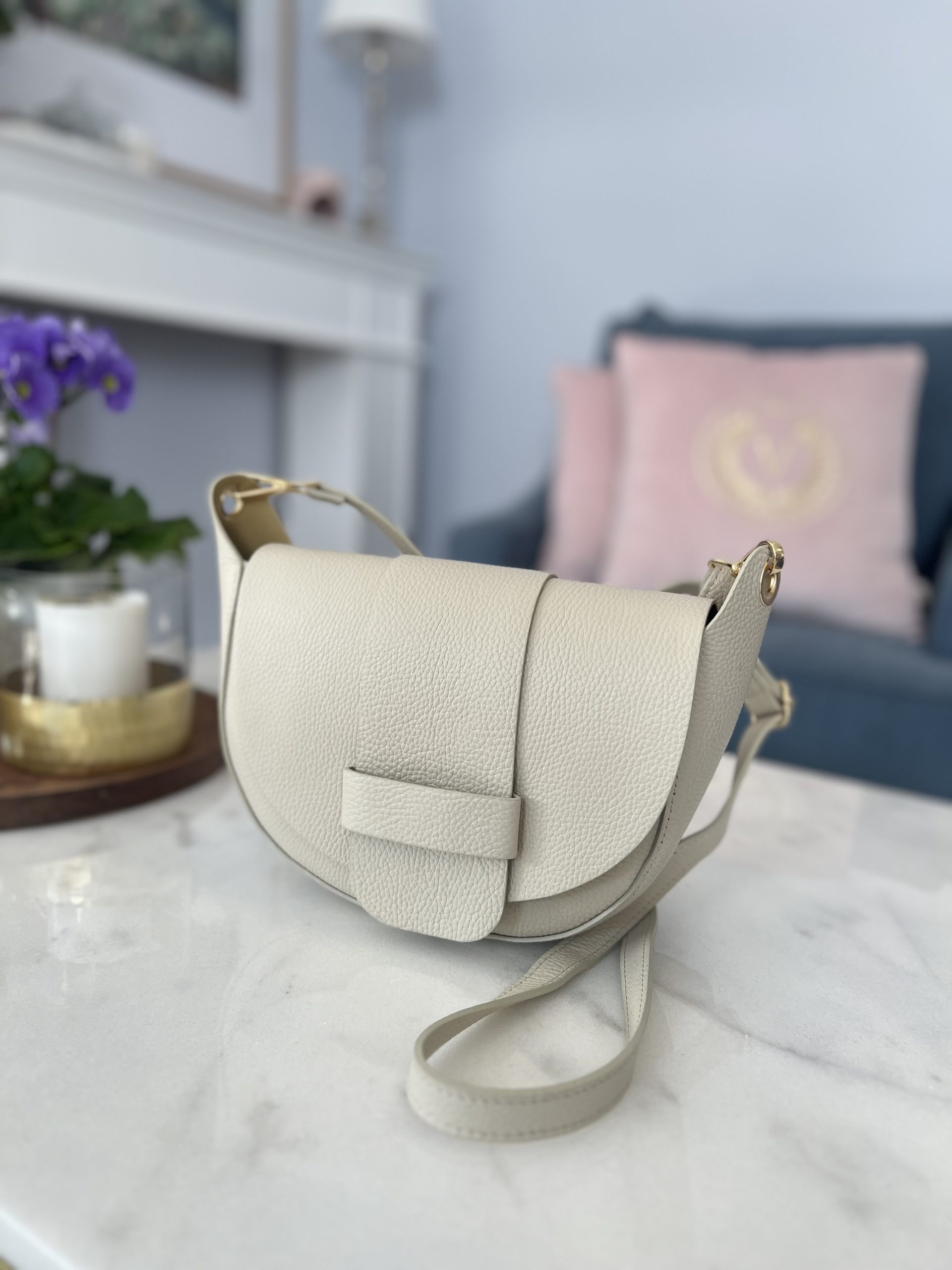 Wielofunkcyjna, zgrabna torebka z wygodnym regulowanym paskiem. Bardzo dokładnie wykonana, z grubej skóry, świetnej jakości. Jej neutralny design pozwala nosić ją do wielu stylizacji- zarówno tych bardzo eleganckich jak i bardziej casualowych. Sprawdzi się noszona do sukienek jak i do jeansów. Mimo niewielkiego rozmiaru jest bardzo pojemna i wygodna w użytkowaniu.