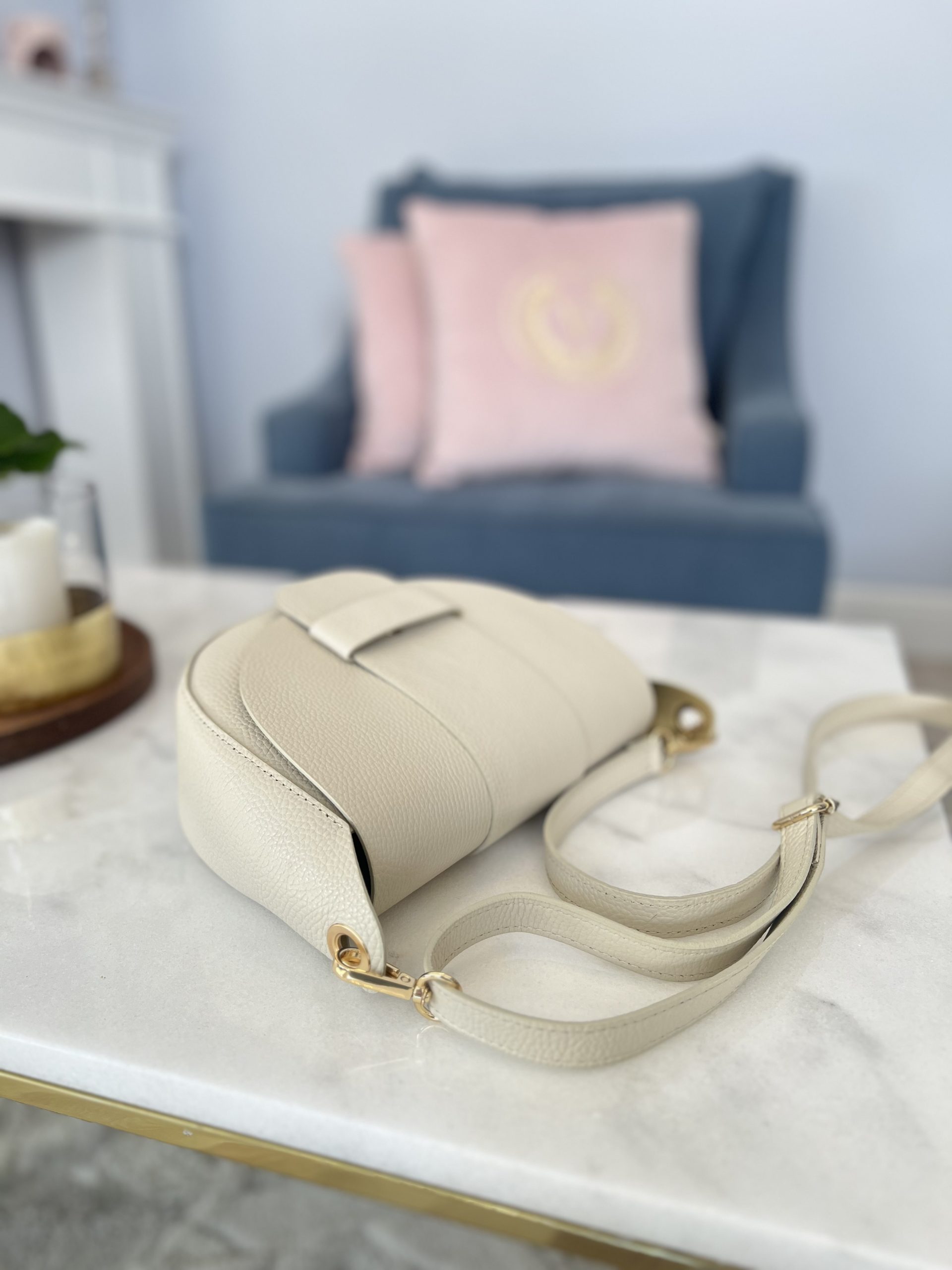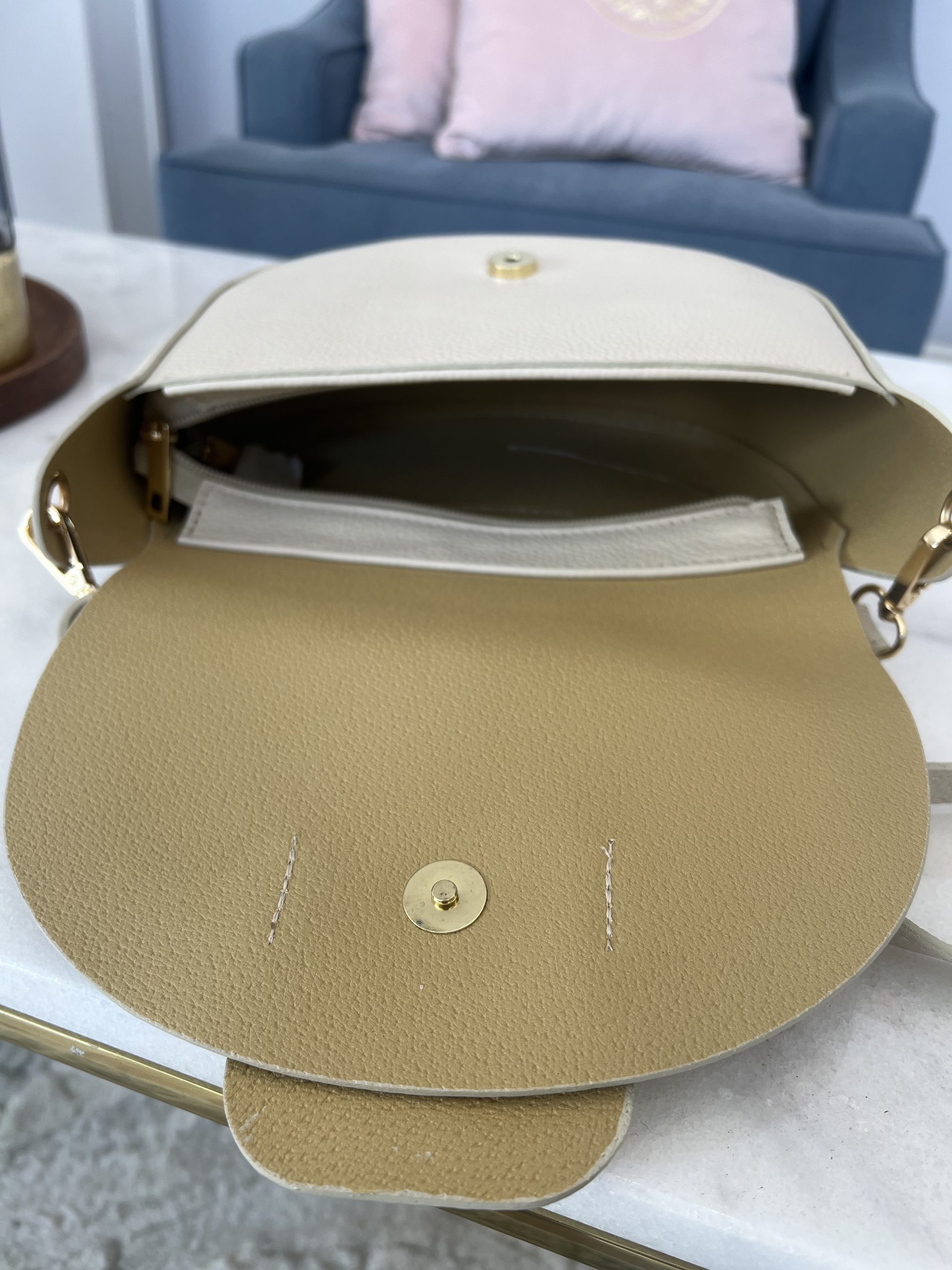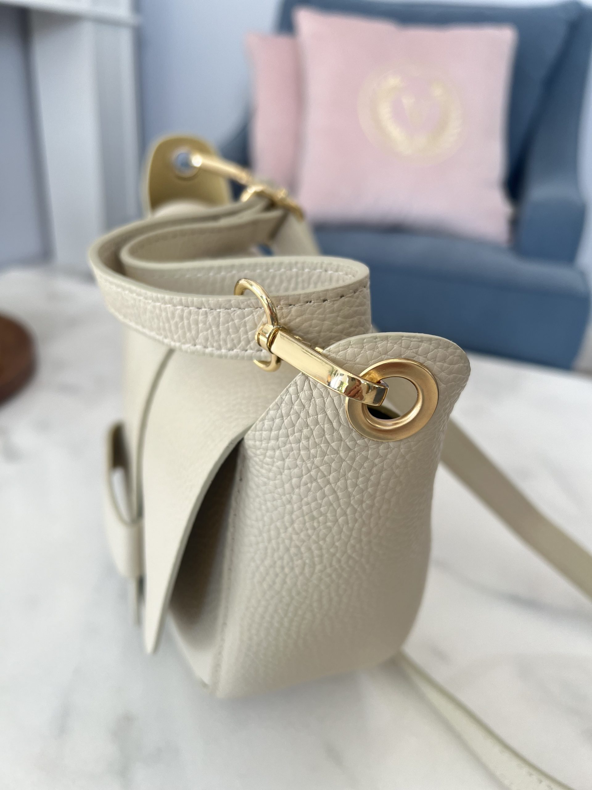 Wielofunkcyjna, zgrabna torebka z wygodnym regulowanym paskiem. Bardzo dokładnie wykonana, z grubej skóry, świetnej jakości. Jej neutralny design pozwala nosić ją do wielu stylizacji- zarówno tych bardzo eleganckich jak i bardziej casualowych. Sprawdzi się noszona do sukienek jak i do jeansów. Mimo niewielkiego rozmiaru jest bardzo pojemna i wygodna w użytkowaniu.