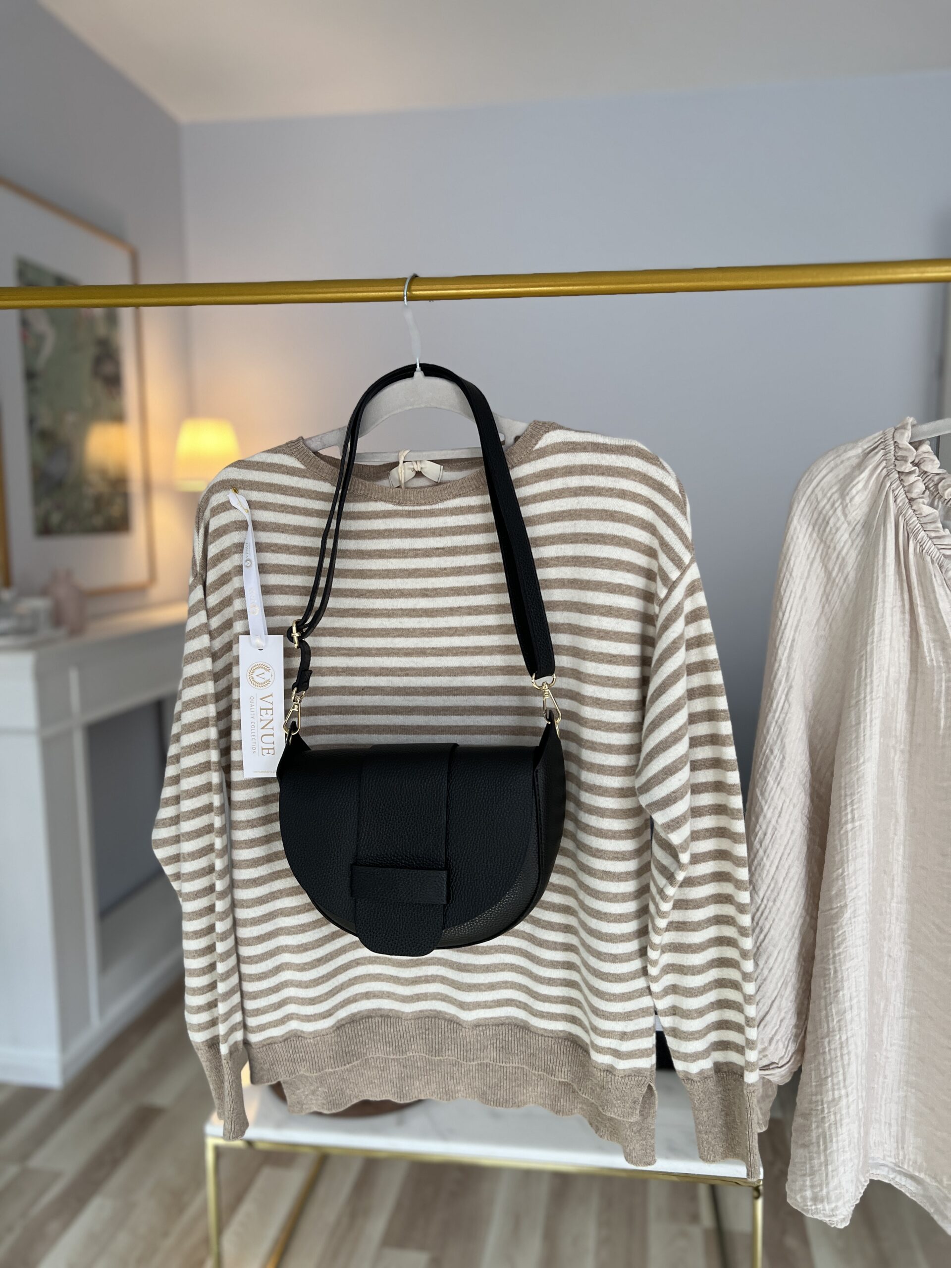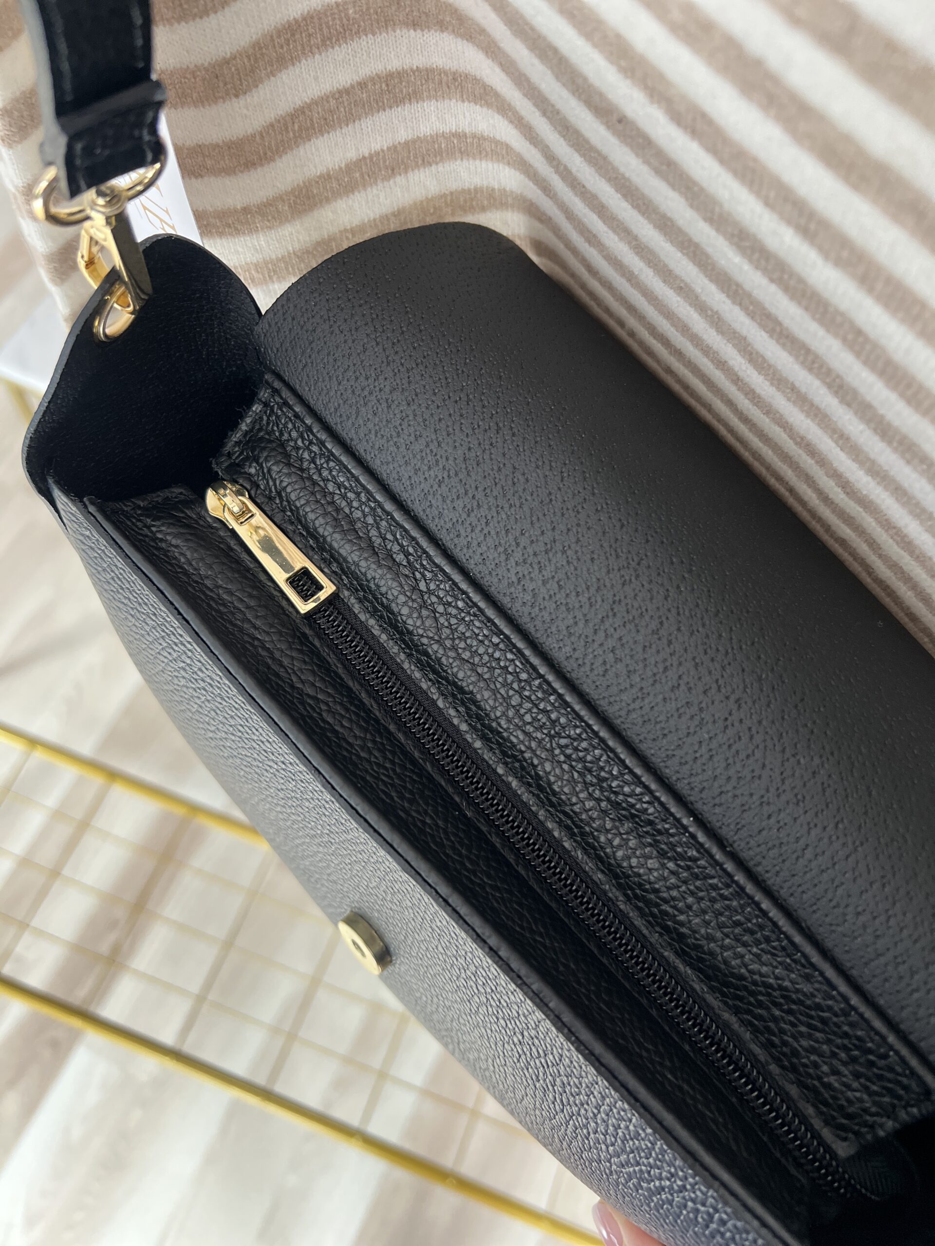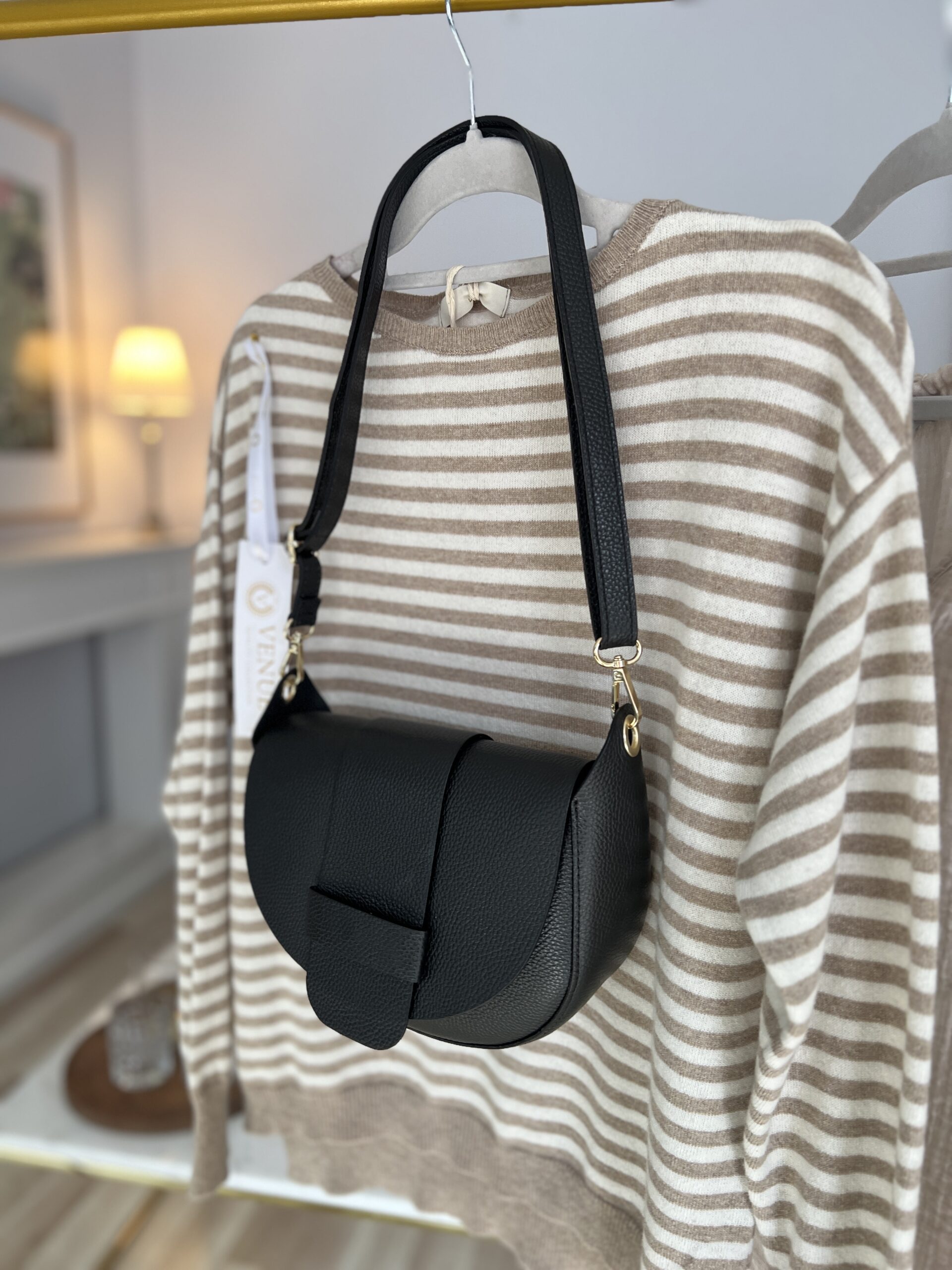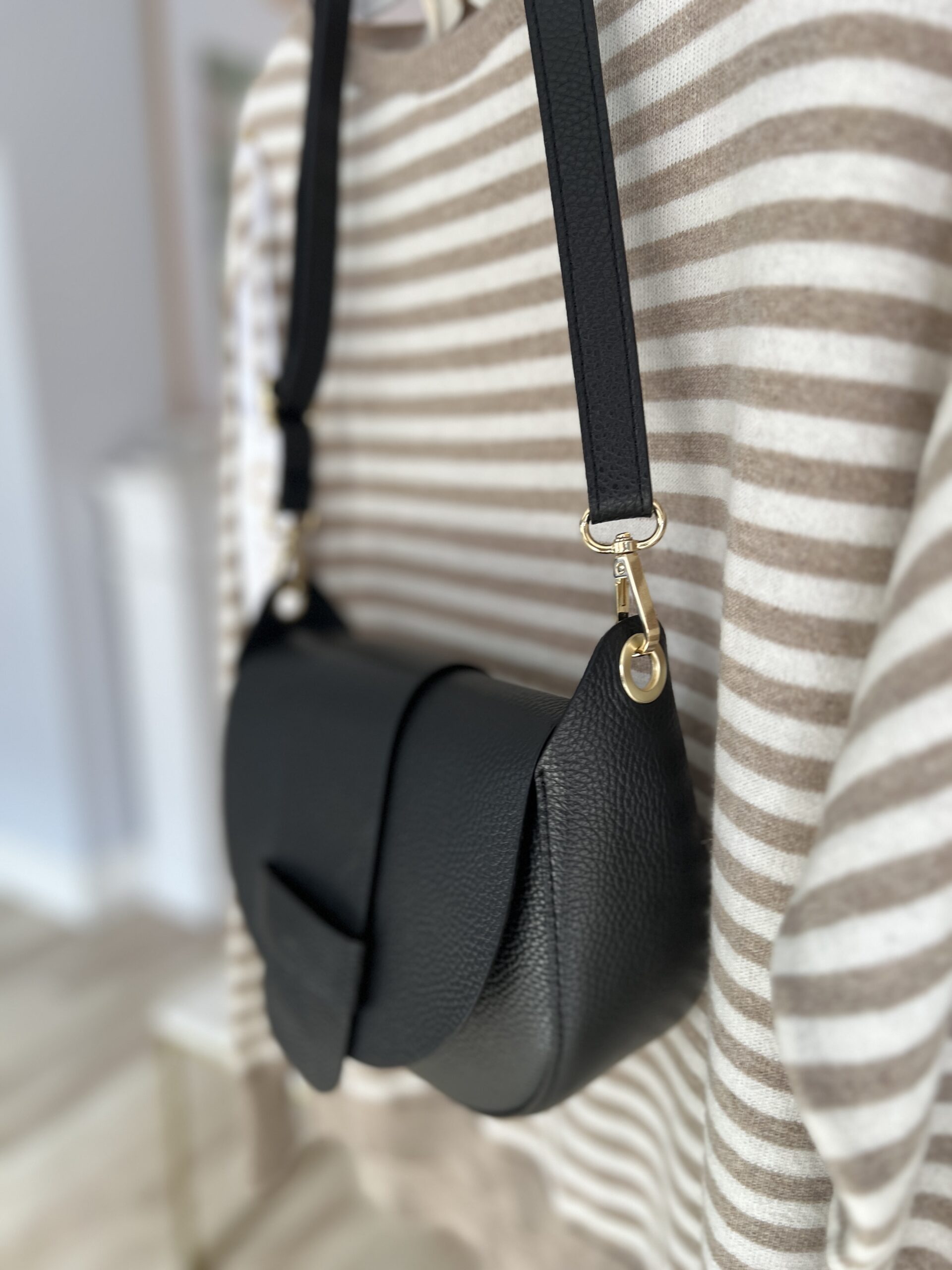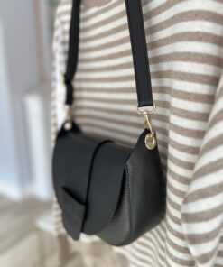 Wielofunkcyjna, zgrabna torebka z wygodnym regulowanym paskiem. Bardzo dokładnie wykonana, z grubej skóry, świetnej jakości. Jej neutralny design pozwala nosić ją do wielu stylizacji- zarówno tych bardzo eleganckich jak i bardziej casualowych. Sprawdzi się noszona do sukienek jak i do jeansów. Mimo niewielkiego rozmiaru jest bardzo pojemna i wygodna w użytkowaniu.