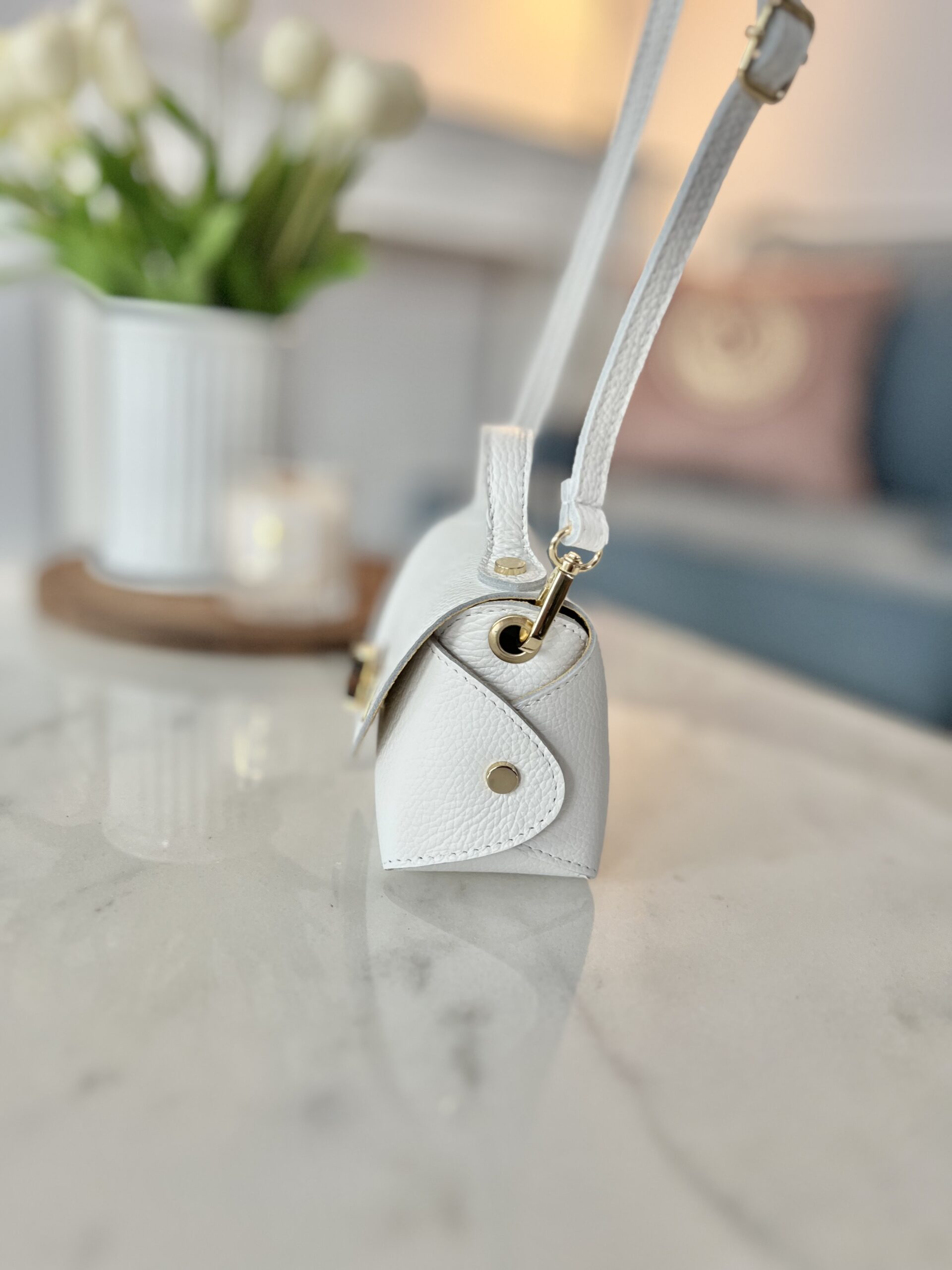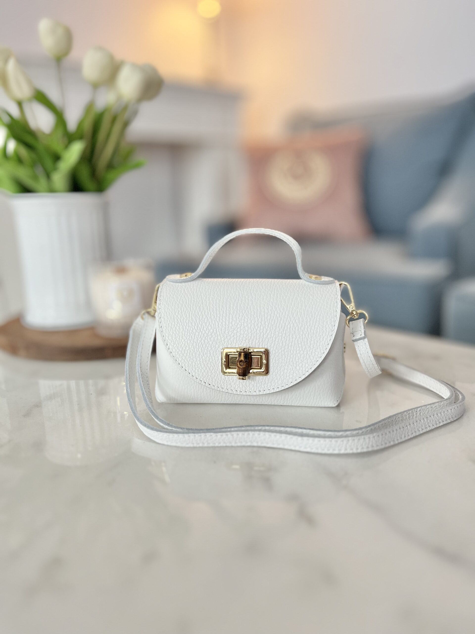 MIU to torebka mniejszych rozmiarów, wielofunkcyjna, zgrabna z wygodnym regulowanym paskiem. Bardzo dokładnie wykonana, z grubej skóry, świetnej jakości. Jej neutralny design pozwala nosić ją do wielu stylizacji- zarówno tych bardzo eleganckich jak i bardziej casualowych. Sprawdzi się noszona do sukienek jak i do jeansów. Mimo niewielkiego rozmiaru jest bardzo pojemna i wygodna w użytkowaniu. Idealna do wiosenno-letnich stylizacji.