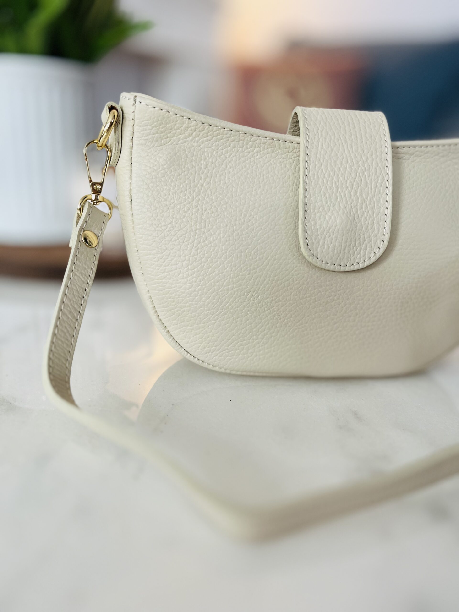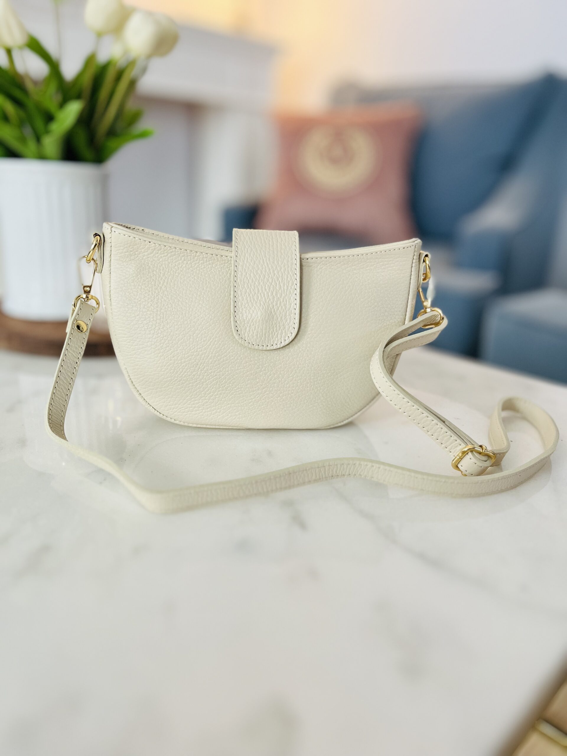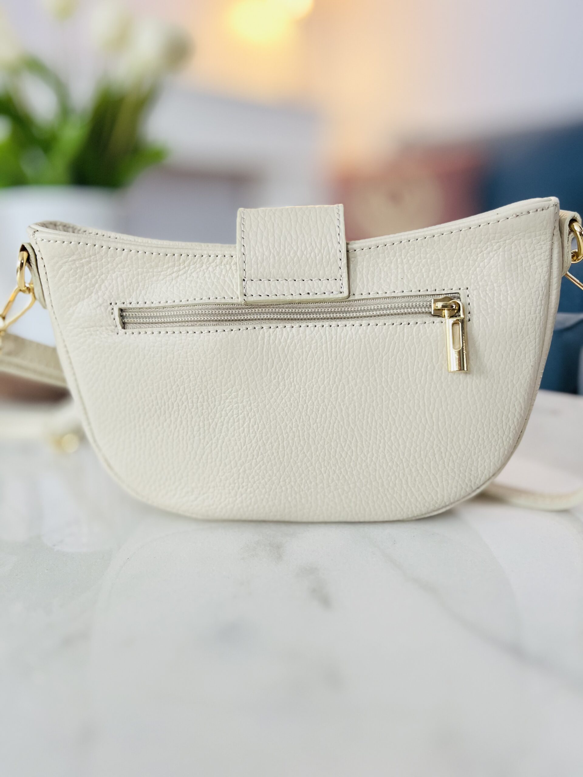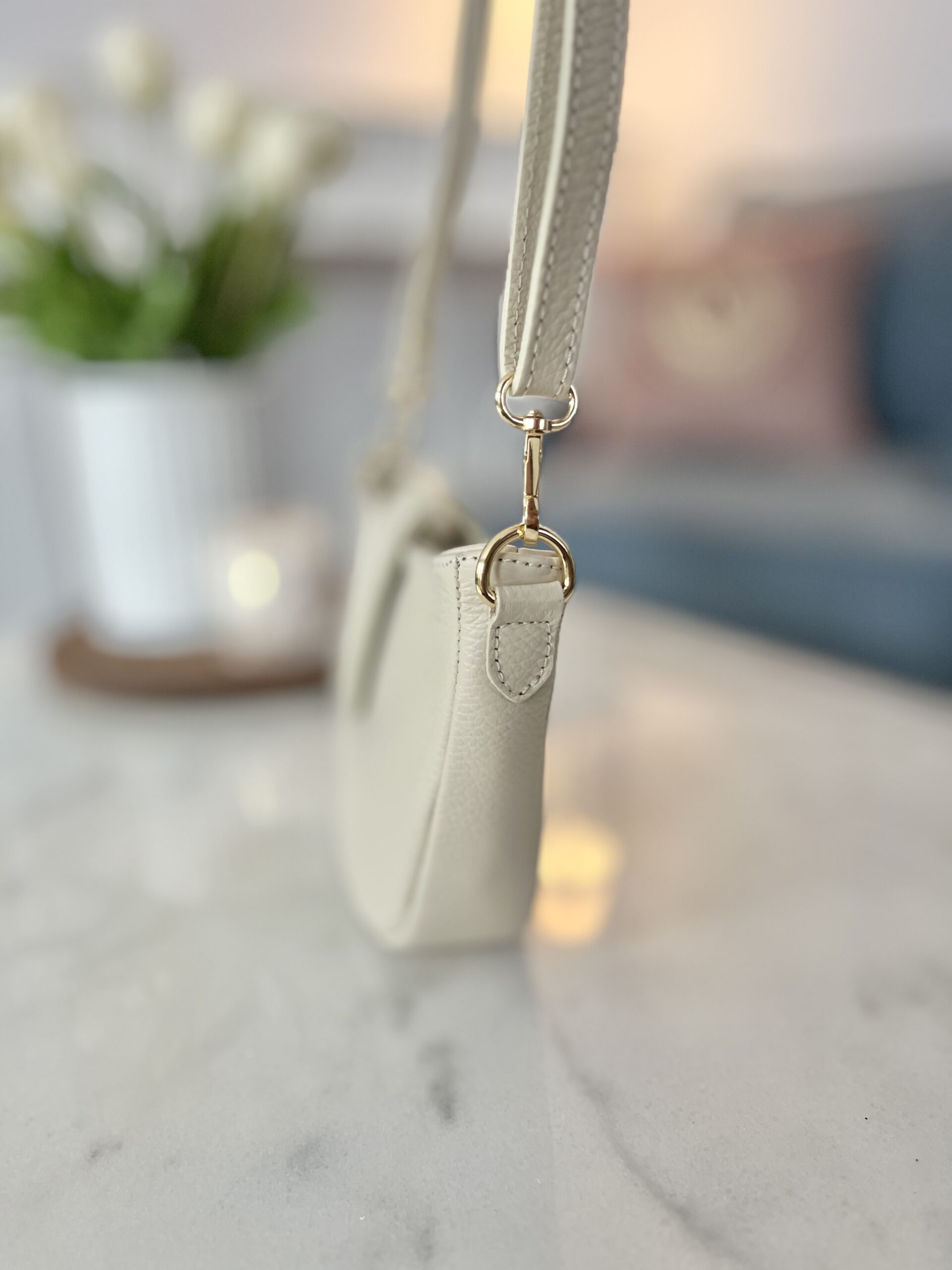 Wielofunkcyjna, zgrabna torebka z wygodnym regulowanym paskiem. Bardzo dokładnie wykonana, z grubej skóry, świetnej jakości. Jej neutralny design pozwala nosić ją do wielu stylizacji- zarówno tych bardzo eleganckich jak i bardziej casualowych. Sprawdzi się noszona do sukienek jak i do jeansów. Mimo niewielkiego rozmiaru jest bardzo pojemna i wygodna w użytkowaniu.